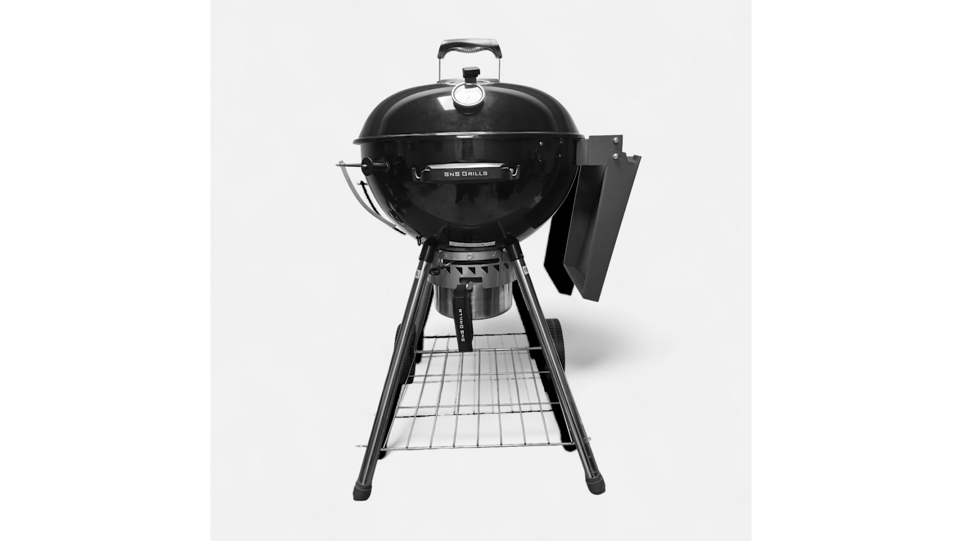 Slow ‘N Sear Original Kettle был разработан фанатами гриллинга, которые учли все нюансы и мелочи, с которым сталкиваются любители барбекю во время готовки. Первым что бросается в глаза это наличие четырех ножек, вместо классических трех, которыми оснащены большинство сферических угольных грилей – это делает гриль очень устойчивым. Данная особенность позволяет оснастить его вместительным, откидным столиком, которого так не хватает во время приготовления блюд барбекю, а полка под грилем существенно больше классической треугольной и вмещает всё необходимое для гриллинга. Но это ещё не всё!